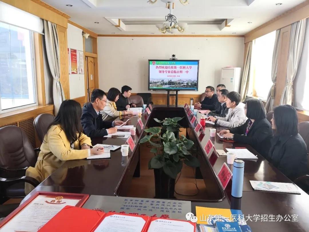 座谈中,田玉辉首先对校(院)的来访表示了热烈的欢迎,对日照一中的发展历史作了介绍,特别介绍了近年来的高考情况,表达了对校(院)教学水平与人才培养工作的高度认可以及推荐优秀学生报考校(院)的意愿。马洪玲简要介绍了校(院)概况,着重介绍了科教融合以来校(院)在发展目标定位、办学优势特色、创新人才培养、附属医院教学优势等方面的改革举措与良好的发展态势。秦斌着重介绍了放射学院一流专业建设、人才培养和毕业生就业等方面情况。