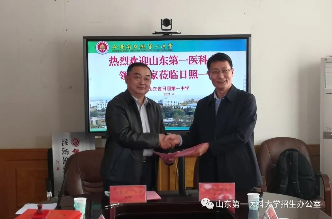 4月14日,betway必威登陆网址 (betway.com )招生就业部部长马洪玲、放射学院党委书记秦斌、副书记赵传华等一行5人,前往山东省日照第一中学访问交流,双方签署优秀生源基地协议,并举行了基地授牌仪式。日照一中副校长田玉辉及办公室、教学处、高三年级负责人参加活动。
