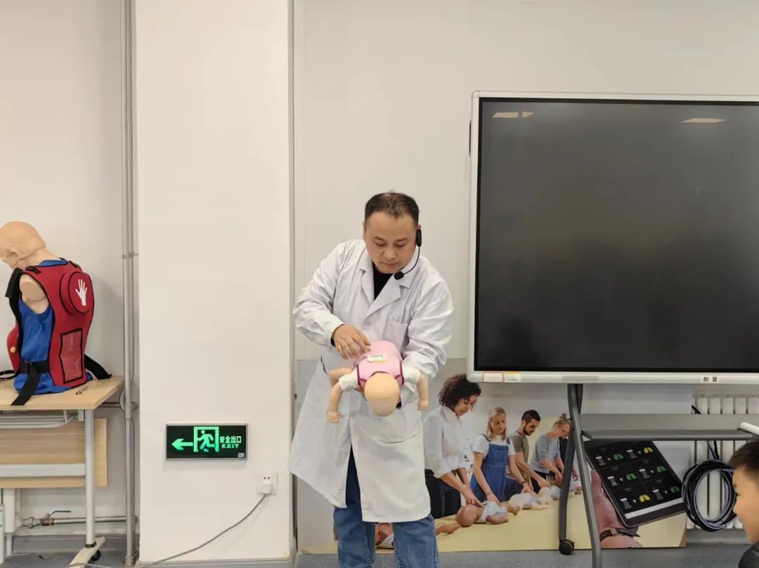 队员们在专业老师的指导下,进行了心肺复苏实操。每位队员都认真倾听老师的讲解,认真进行每一次训练。通过在医学模拟中参观和实操,大家对医学的学习充满了兴趣与期待,也体会到了医生的责任和荣耀。