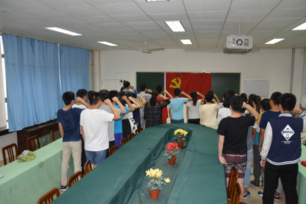 6月29日下午,在党的94岁生日即将到来之际,信息工程学院在物理楼会议室举行了庄严的“迎七一”新党员宣誓、老党员重温入党誓词活动。全体党员高举右拳,在鲜红的党旗下,许下了光荣而神圣的誓言,表示要用实际行动捍卫党的尊严,把入党誓言落实在学习上,体现在实践中,不辜负组织的培养和期望。党委副书记李惠萍对新发展的党员寄予希望,希望他们在今后的学习中倍加努力,发扬党的优良传统,在学习生活中发挥模范带头精神,以实际行动履行自己的入党誓言。