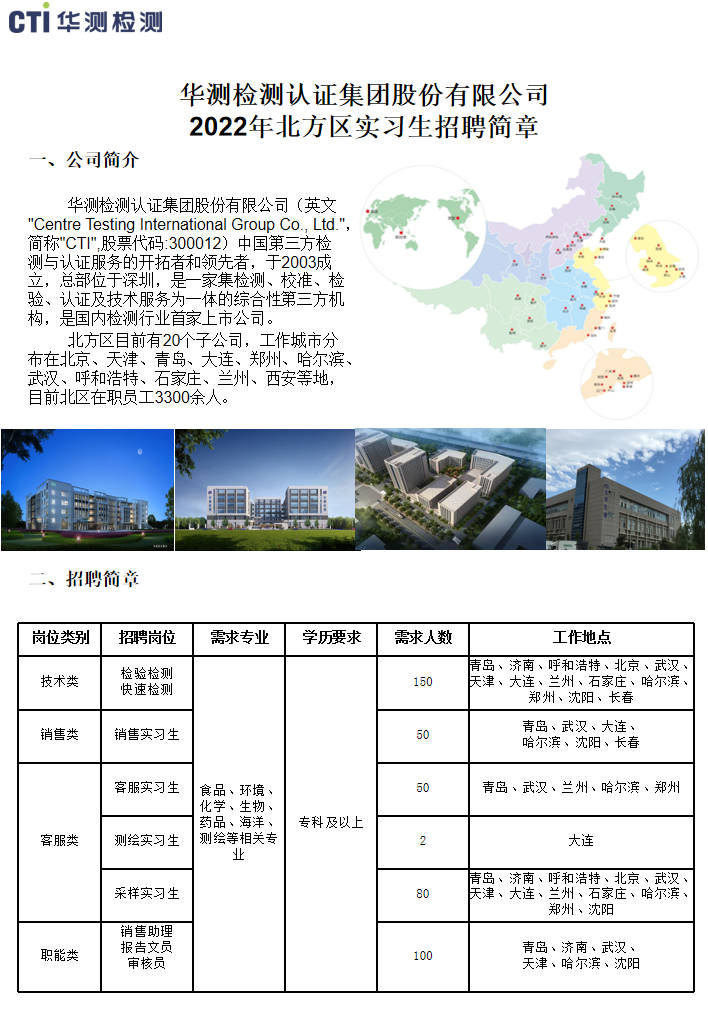 华测检测认证集团股份有限公司 2022年北方区实习生招聘简章