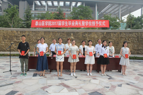 院长助理张爱华宣读了《关于表彰2017届优秀毕业生的决定》,泰山医学院副院长徐淑凤和护理学院领导为毕业生代表颁发了毕业证书,为省级优秀毕业生颁发了荣誉证书。