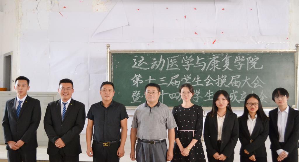 2018年9月27日,运动医学与康复学院于物理楼报告厅召开第十三届学生会换届大会暨第十四届学生会成立大会,运动医学与康复学院副院长程厚文,学工办主任赵志国出席会议。我院第十三届学生会主席团以及第十四届学生会全体成员参加会议。