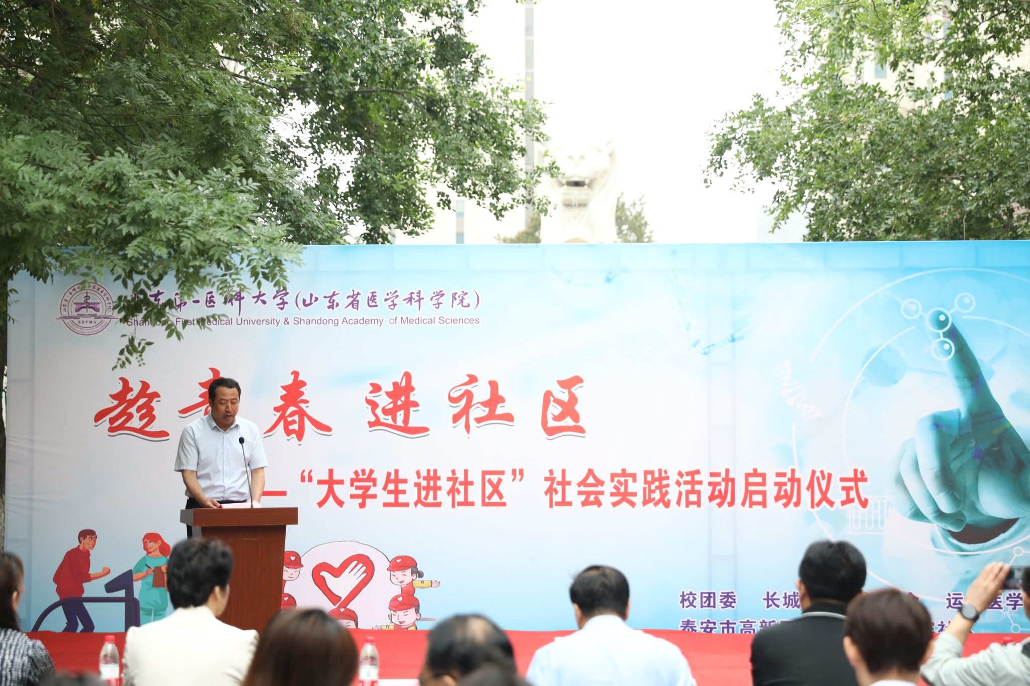 为深入开展学习贯彻习近平新时代中国特色社会主义思想主题教育,响应全省“百万大学生进社区”社会实践号召,5月26日上午,校(院)在泰安高新区北集坡街道河滨社区举行“趁青春 进社区——大学生进社区”社会实践活动启动仪式。校(院)党委委员、副校(院)长李栋,泰安高新区党工委副书记姚来新出席活动。