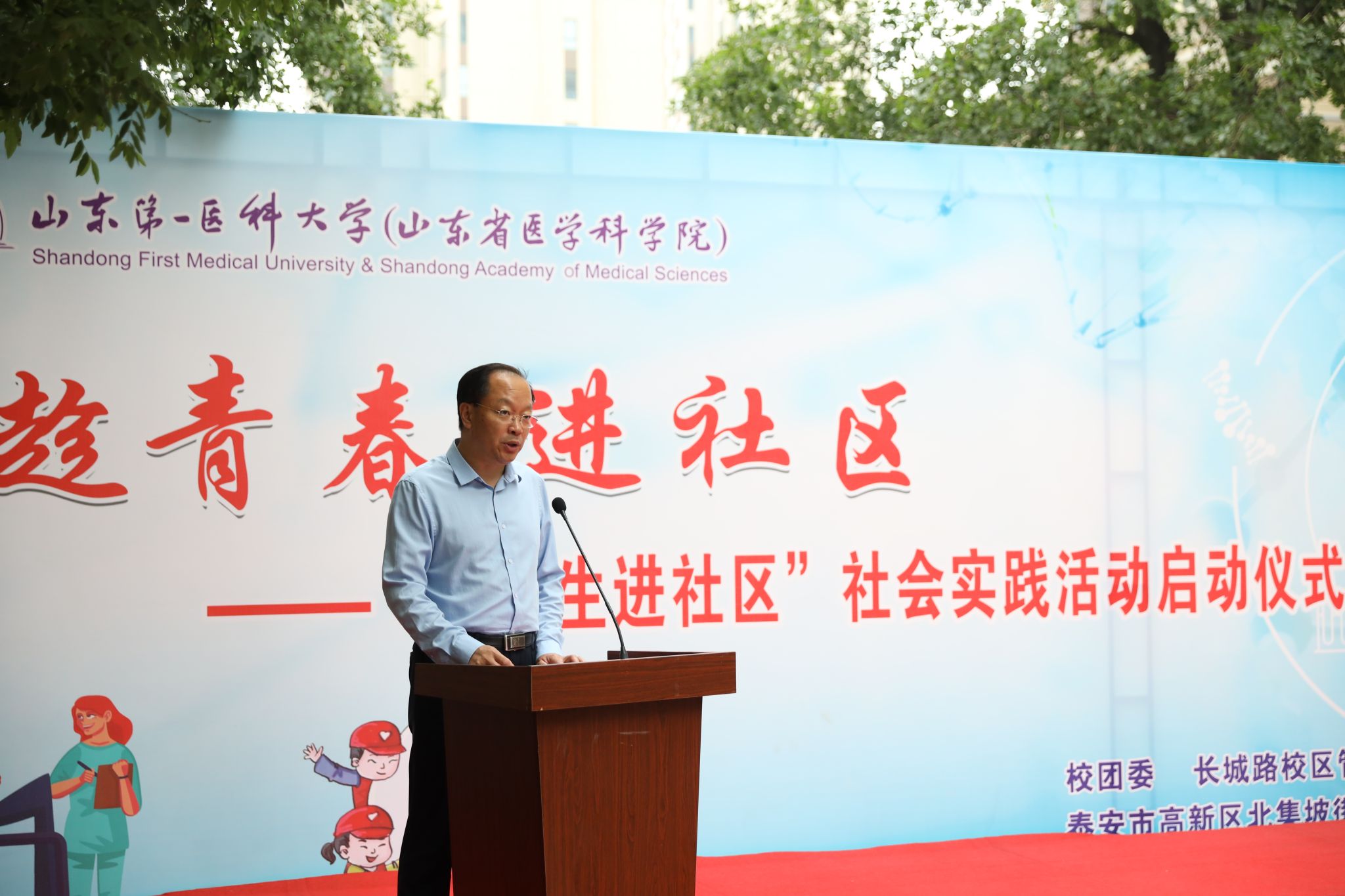 李栋在讲话中指出,校(院)高度重视实践育人工作,牢固树立“突出实效、尚树品德、健全人格、创新能力”的实践育人理念,推动实践育人内涵化、规范化、常态化、长效化发展。此次开展“大学生进社区”社会实践活动,正是深入开展学习贯彻习近平新时代中国特色社会主义思想主题教育的生动实践,是校地资源共享、人才共育的务实之举,是大学履行社会责任,助力校地高质量发展的有效路径。希望通过此次社区实践活动,引领大学生争做有理想、敢担当、能吃苦、肯奋斗的新时代好青年,为推动泰安高新区民生社会事业发展,推进健康山东、健康中国建设作出积极贡献。
